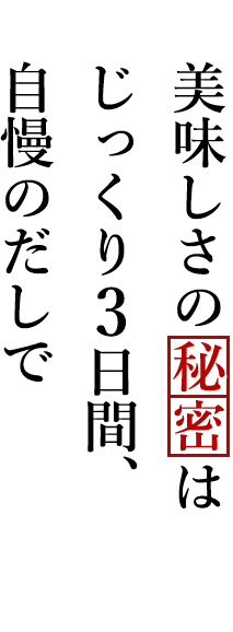 魚介や鶏旨味をたっぷりと染み込ませます。
